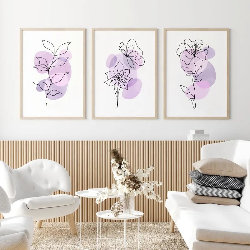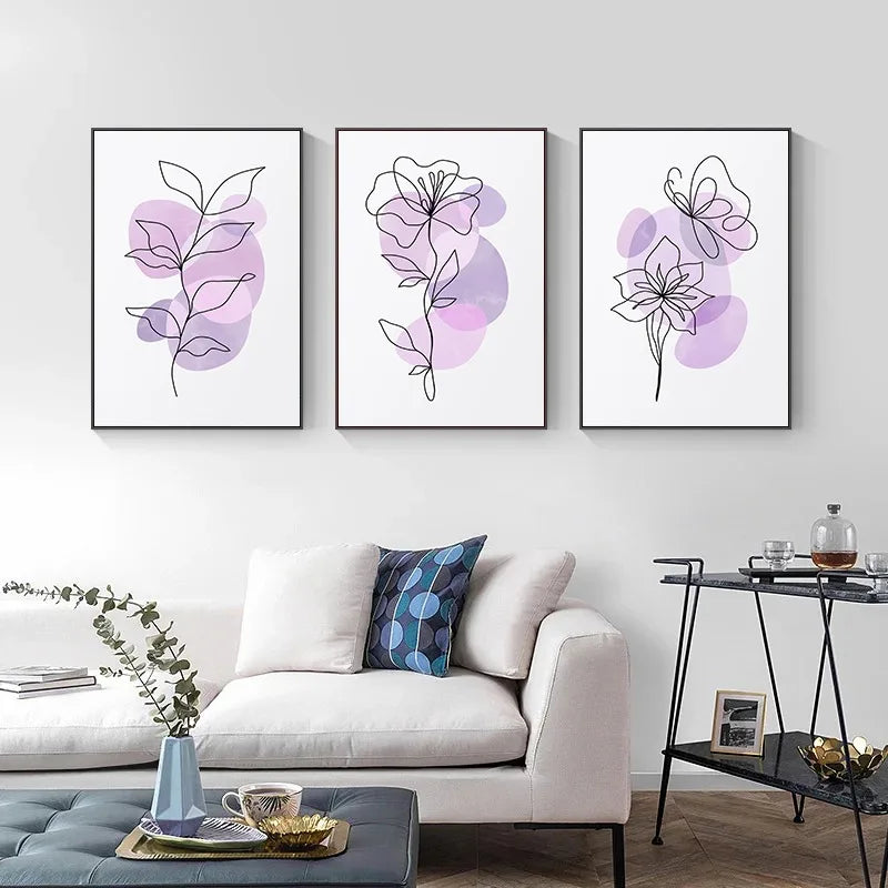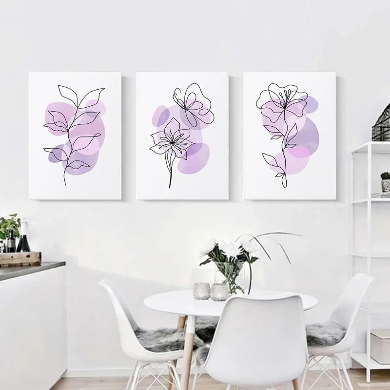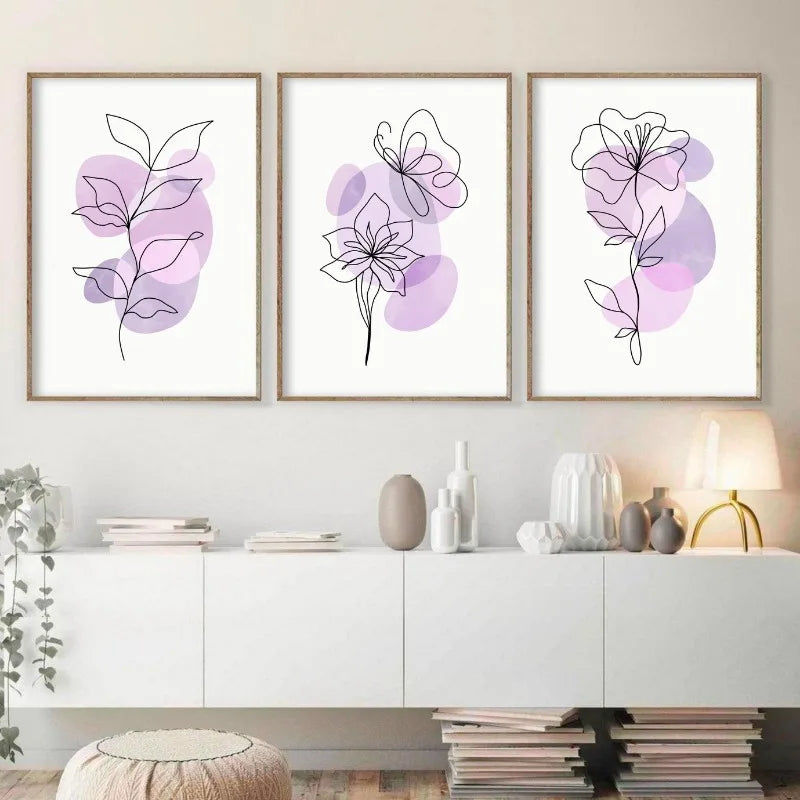 Linha Floral - Tela Abstrata Floral Lilás